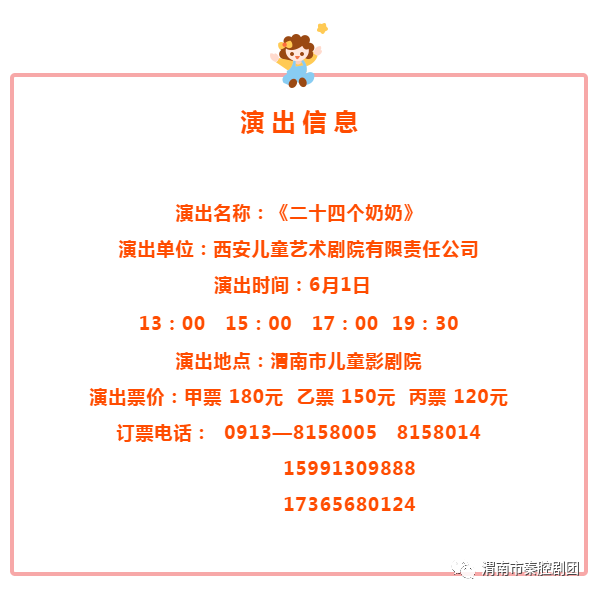 體弱多病的翔翔來到農村,由奶奶照料。在城市生活的他習慣這里嗎?又和奶奶發生了什么樣感人的故事?6月1日,西安兒藝兒童劇《二十四個奶奶》即將登陸渭南,為你講述一個溫暖的故事。