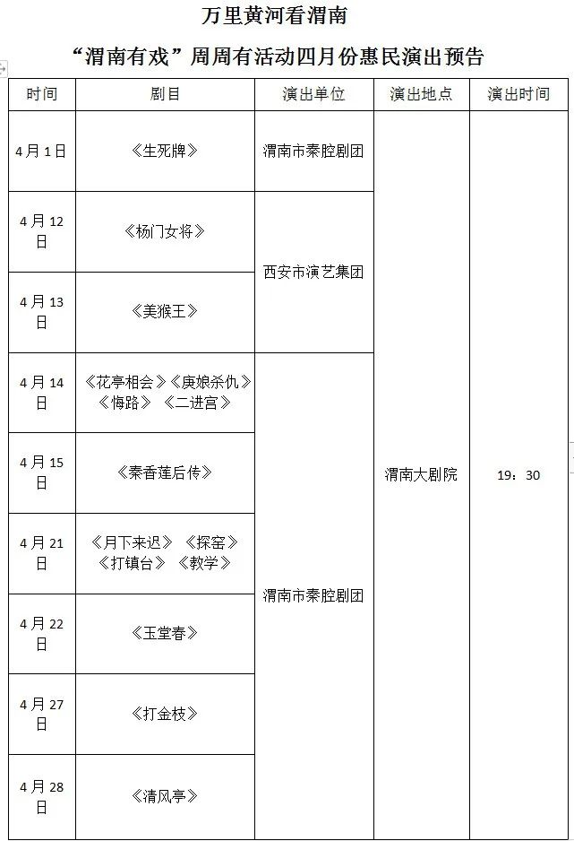 春意漸濃,這樣踏青出游的好時節(jié),不妨走進(jìn)劇場,度過一段美妙而充實的時光。周周有戲!萬里黃河看渭南系列活動繼續(xù)精彩不斷。 快隨我們了解四月的演出詳情吧!
